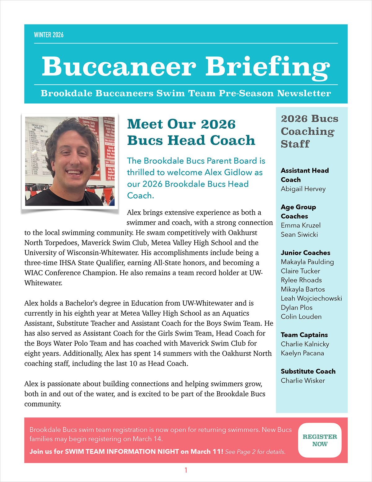 Take a moment to explore our 2026 pre-season newsletter, filled with important information to help you prepare for the upcoming swim season!